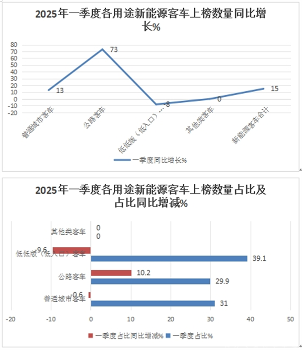 上图表显示,按目标用途划分,在2025年一季度新能源客车公告中上榜的各类新能源客车车型中: