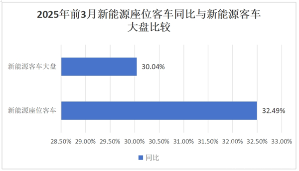 同时,2025年前3月大中型新能源座位客车累计同比增长32.49%,也跑赢2025年前3月大中型新能源客车大盘30.04的同比增速。