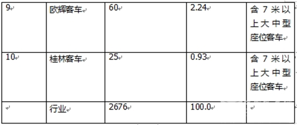 ---亚星客车出口264辆,市场占比9.87%,居第六;