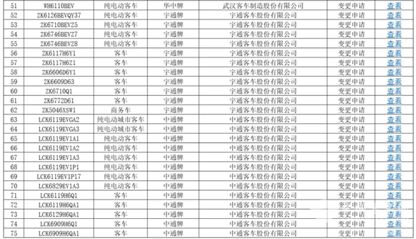 上图可见,在交通部第75批上榜的达标的道路运输客车车型公告中: