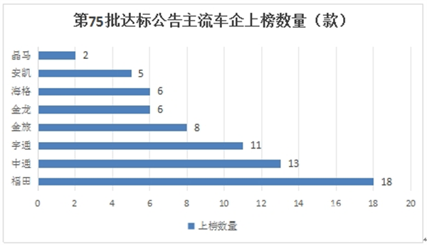 上表图说明,在第75批交通部上榜达标道路运输客车车型中: