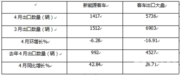 一是去年同期我国新能源客车出口基数相对较低,给今年4月新能源客车出口同比呈现较大幅度增长奠定了基础;