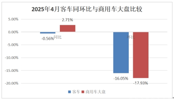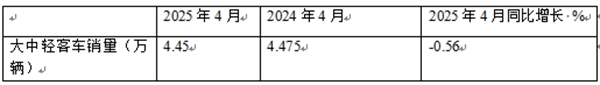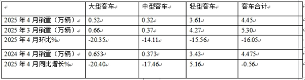 表1、2025年4月大中轻客车同比下降0.56%(数据来源:商用车专业委员会提供的批发信息):