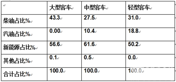 表5、据终端数据统计,2025年1-4月,按搭载动力燃料划分客大中轻客车占比结构: