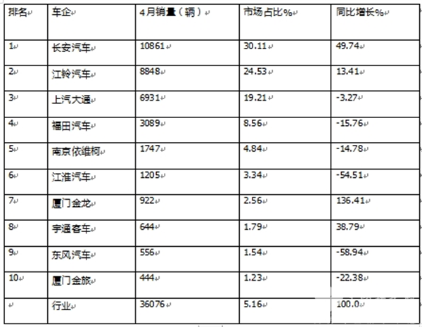 4月轻客:销3.6万辆!长安夺冠;宇通杀入前八,金龙增1.36倍领涨