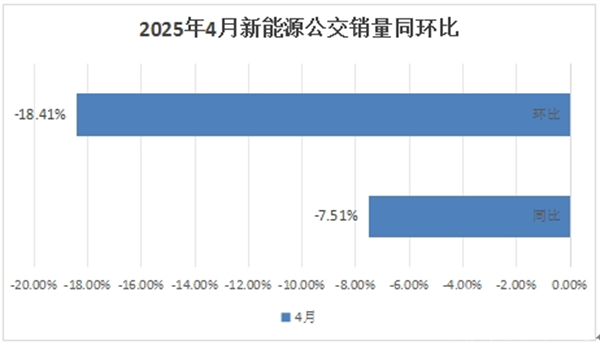 根据中国客车统计信息网数据,2025年4月我国7米以上新能源公交客车同环比均下降,遭遇“滑铁卢”,“银四”落空!