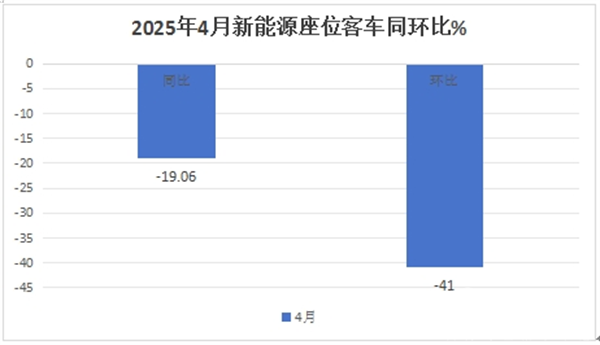 根据中国客车统计信息网数据,2025年4月我国大中型新能源座位客车同环比分别增长-19.06%和-41%,而今年4月大中型新能源客车大盘同环比分别为-9.93%和-26.92%,可见今年4月大中型新能源座位客车同环比均跑输今年4月大中型新能源客车大盘;