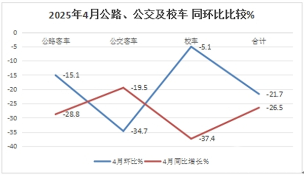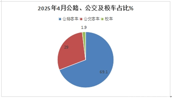 上图表可见,在2025年4月5米以上公路、公交、校车三大细分市场中: