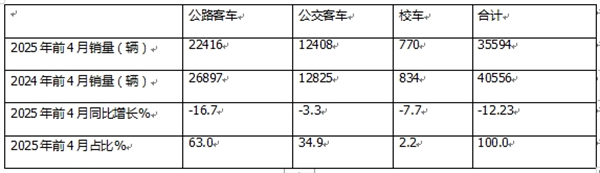 那么2025年4月及1-4月公路、公交和校车三大细分市场销量有何主要特点?现予以简要分析。