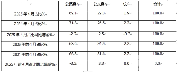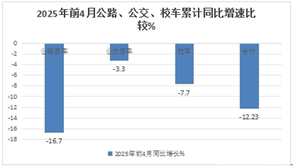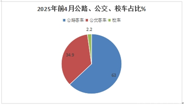 上图表可见,在2025年前4月5米以上公路、公交、校车三大细分市场中: