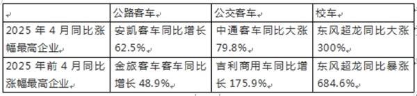 截图1,2025年4月客车三大细分市场同比增长最猛的车企(数据来源:慧眼看车)