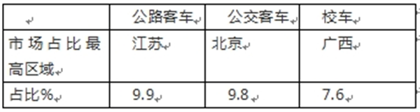 2、公交客车占比分别为29%和34.9%,均为第二大细分市场,但占比同比分别增加2.5和3.3百分点,均是占比同比增加最多的细分市场,也是“风头最盛”的细分车型;