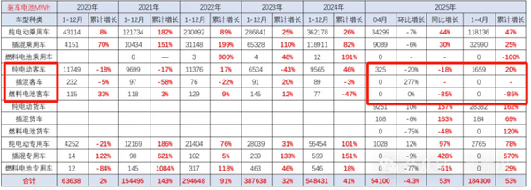 2025年4月新能源客车产量及动力电池装机量简析