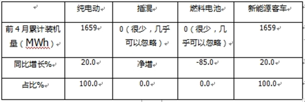 ---插电式混动客车装机量为0MWh;