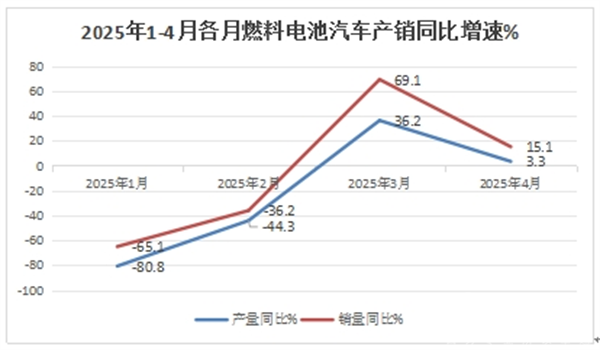 根据中汽协数据,2025年4月我国燃料电池汽车产销分别为342辆和328辆,同比分别增长3.3%和15.1%。