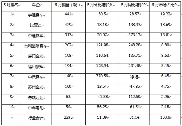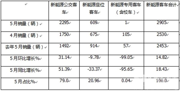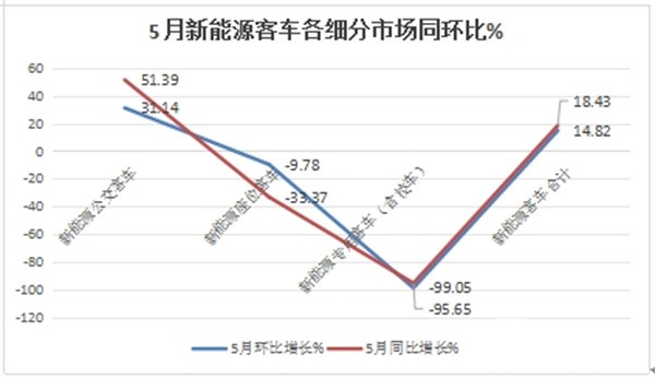 正是上述几个方面因素的叠加作用,导致今年5月新能源公交客车市场同环比呈现了较大幅度的增长。