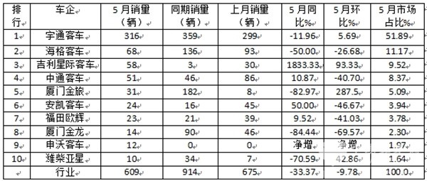 正是上述几个因素的综合作用,导致了今年5月新能源座位客车销量同环比“双降”!