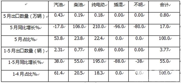 表1,2025年5月及前5月各动力客车出口数量及同比增长(数据来源:海关)