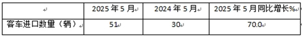 表2,根据中国汽车流通协会提供的数据,2025年5月我国客车进口数量同比增长70%
