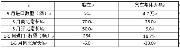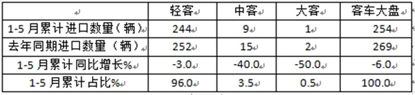 前5月我国客车进口:同比小降6% 轻客领跑领涨 柴油占比超9成