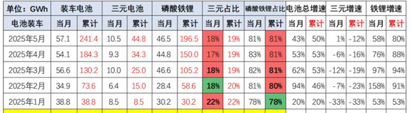 2025年前5月我国动力电池装机量共计241.4GWh,累计同比增50%;