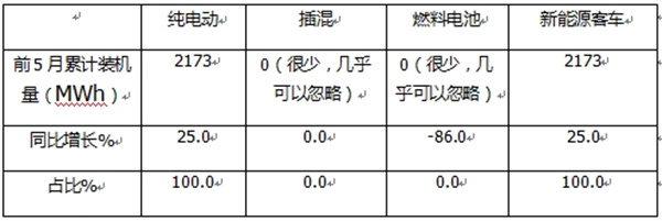 二、5月及前5月新能源客车动力电池装机量整体情况简析