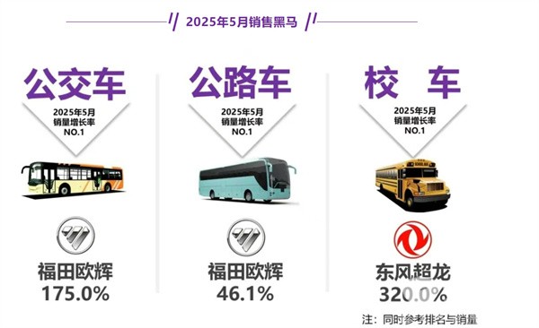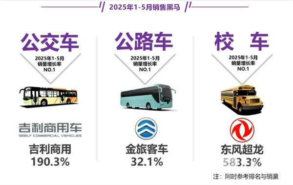 那么2025年5月及1-5月公路、公交和校车三大细分市场销量有何主要特点?现予以简要分析。