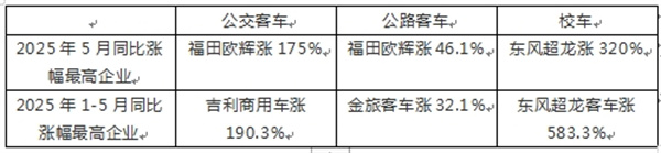 截图1,2025年5月客车三大细分市场同比增长最猛的车企(数据来源:慧眼看车)