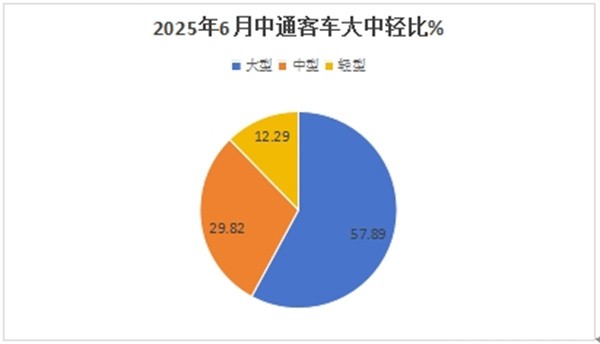 ---从产品销售结构来看,2025年6月份,中通大型客车销量最多(占比57.89%)领跑各细分市场;是中通客车市场的绝对主体部分;中型客车销量占比29.82%居第二;轻型及物流车占比12.29%,居最少;