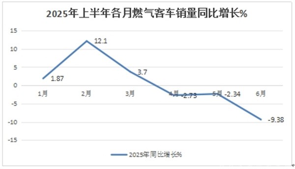 上图显示,在2025年上半年各月燃气客车销量及同比中: