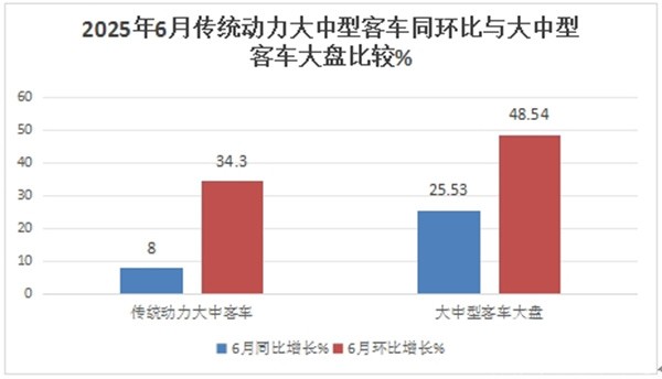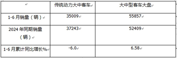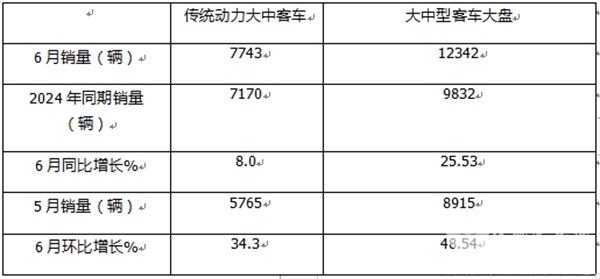 表1,根据中国客车统计信息网数据,2025年6月传统动力大中型客车销量同环比与大中型客车大盘比较: