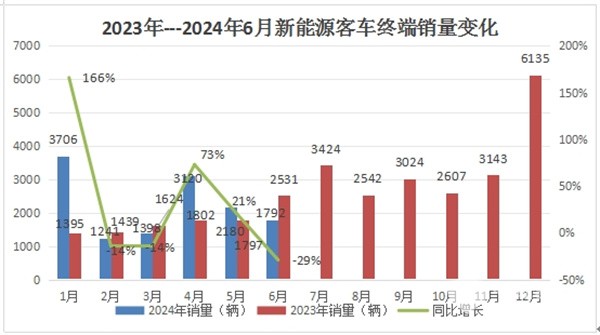 ---今年6月新能源客车终端销量同比大涨77%,主要是去年同期销量基数不高,加之今年受老旧新能源公交客车淘汰更新补贴政策的驱动,新能源客车需求增多。