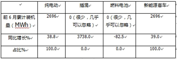二、6月及前6月新能源客车动力电池装机量整体情况简析
