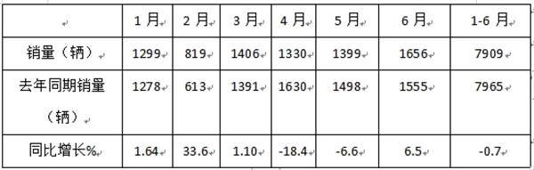 1、6月销量同环比“双增”