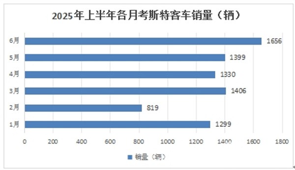上图表显示,2025年6月考斯特客车销量1656辆,创上半年各月销量新高,也是上半年唯一销量超1500辆的月份,说明年中末月的“翘尾效应”显现,因此成为今年上半年考斯特客车市场的一个特点。具体原因上文已简析。