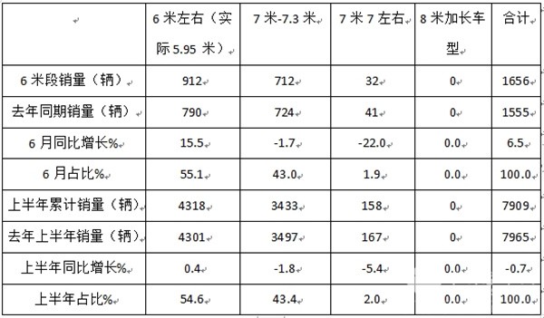 总之,今年6月及上半年销量分别创下近6年同期第一和第二。主要是旅团市场对小型(6米)考斯特客车需求比较旺盛导致的。