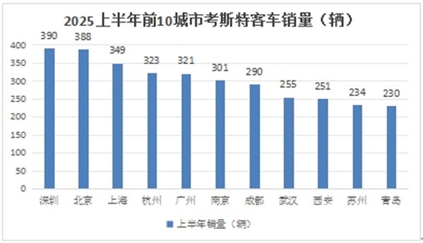 上图可见,在2025年上半年,国内考斯客车流向TOP3区域市场是深圳、北京、上海。