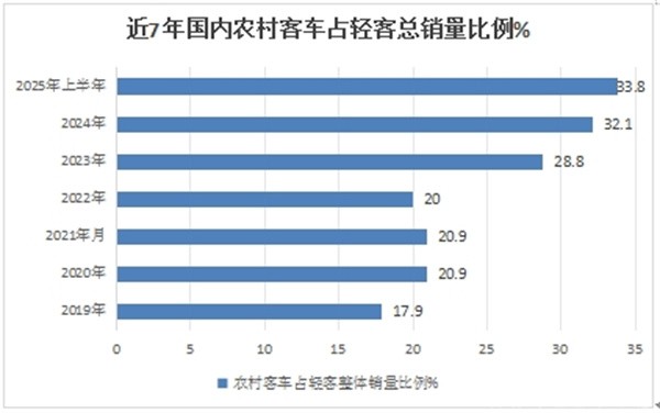 进一步研究发现,在2025年上半年21万辆轻型客车销量中,其中的农村客运车辆销售7.1万辆,比去年同期的6.8万辆增长4.4%,并呈现以下四个主要特点: