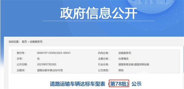 截图1,交通部道路运输车辆达标车型表(第78批公示):