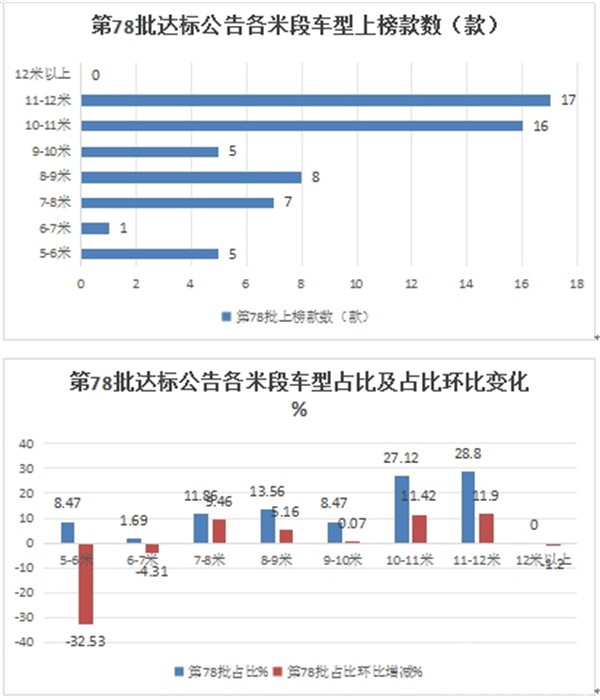 上表图说明,在第78批交通部上榜达标道路运输客车车型中: