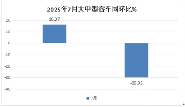 正是上述几个因素的综合作用,导致今年7月大中型客车市场销量环比呈现了近3成(-29.95%)的下降。
