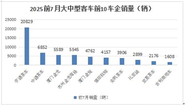 2025年前7月,6米以上大中型客车累销超6万辆增7.88%,“两通三龙”包揽前五,宇通强势霸榜。