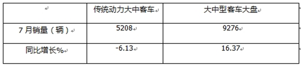 二、7月传统动力大中型客车市场跑输大中型客车大盘