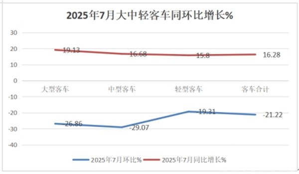 ---2025年7月我国大中轻客车环比下降21.22%,主要是因为今年6月是上半年收官月份,销量基数高,给今年7月环比增长带来巨大困境;加之7月是客车传统的淡季市场,销量需求本来就少,因此导致今年7月大中轻客车销量环比出现了超2成的下降。