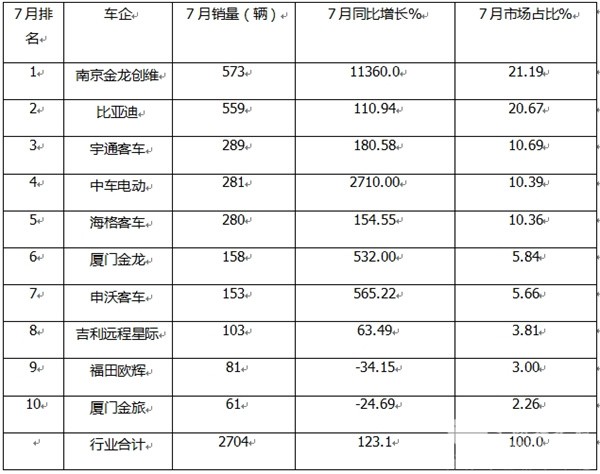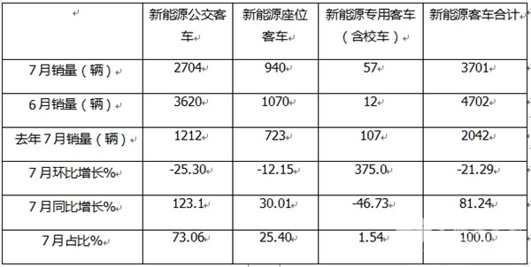 正是上述几个方面因素的叠加作用,导致今年7月新能源公交客车市场呈现同比大涨、环比下降的发展态势。