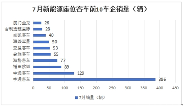 二是6月是上半年收官月份,部分车企为了冲刺上半年业绩指标,加大了新能源座位客车的销售力度,因此导致今年6月新能源座位客车销量基数较高,给今年7月环比增长带来困难。