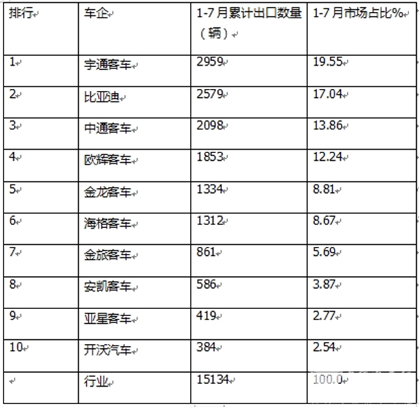 二、前7月公交出口:宇通\比亚迪\中通居前三