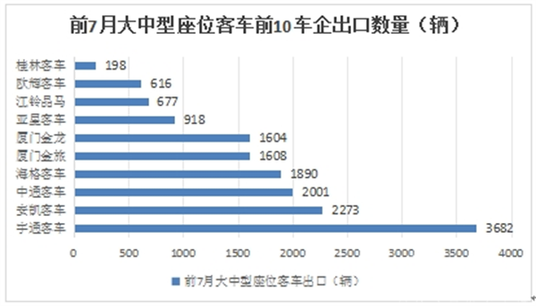 2025年7月大中型座位客车及公交客车出口排行出炉