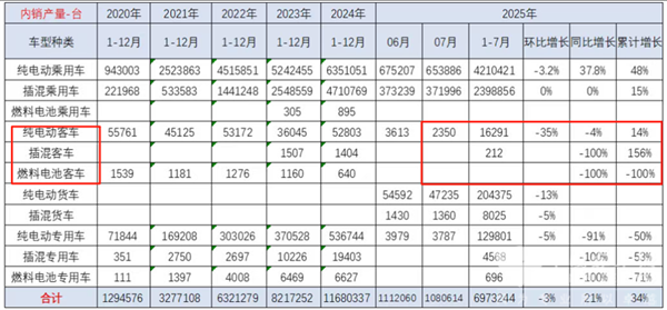 一、2025年7月及前7月新能源客车产量简析