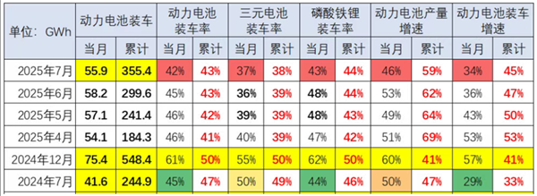 根据中国汽车流通协会提供的数据(见截图2),2025年7月我国动力电池装机量共计55.9GWh,同比增42%;